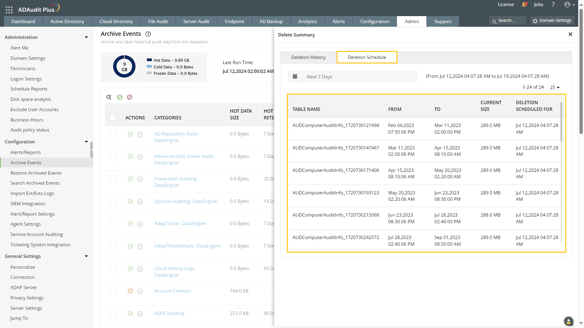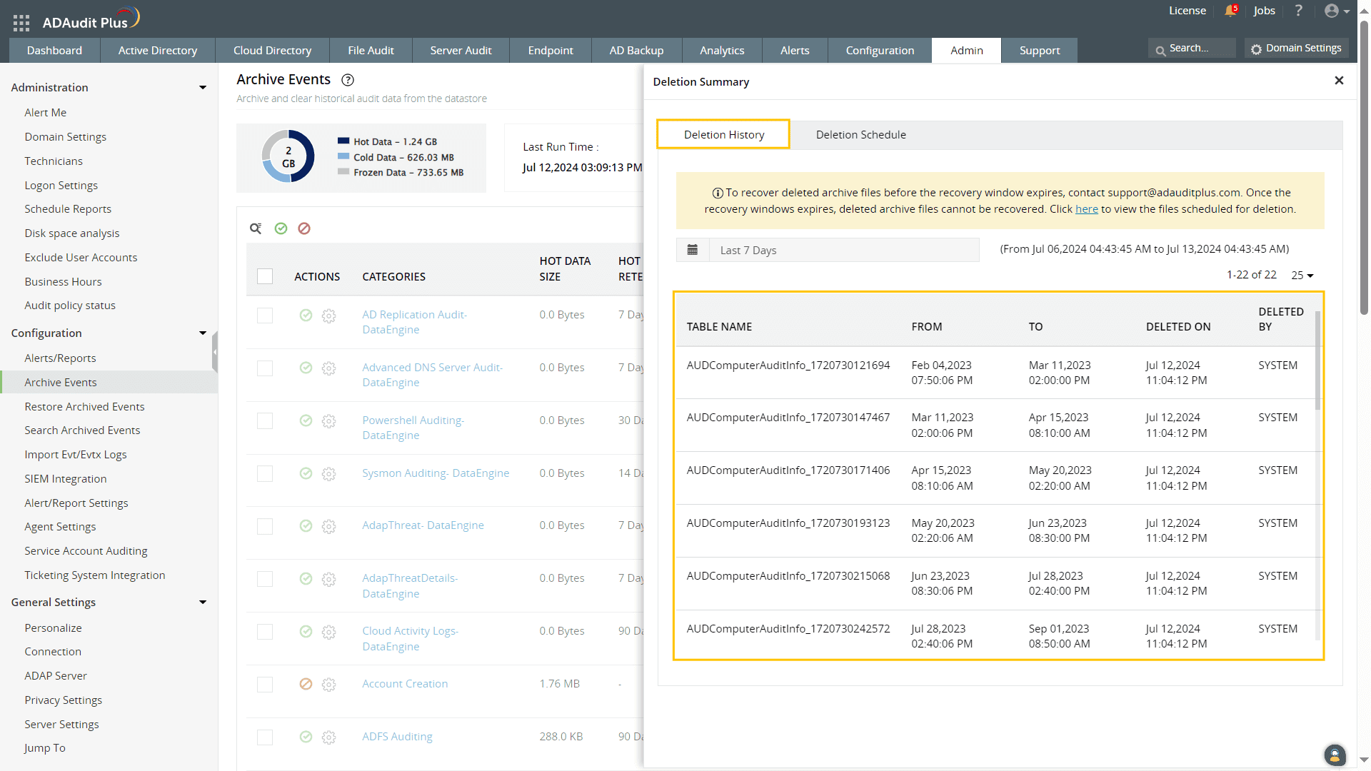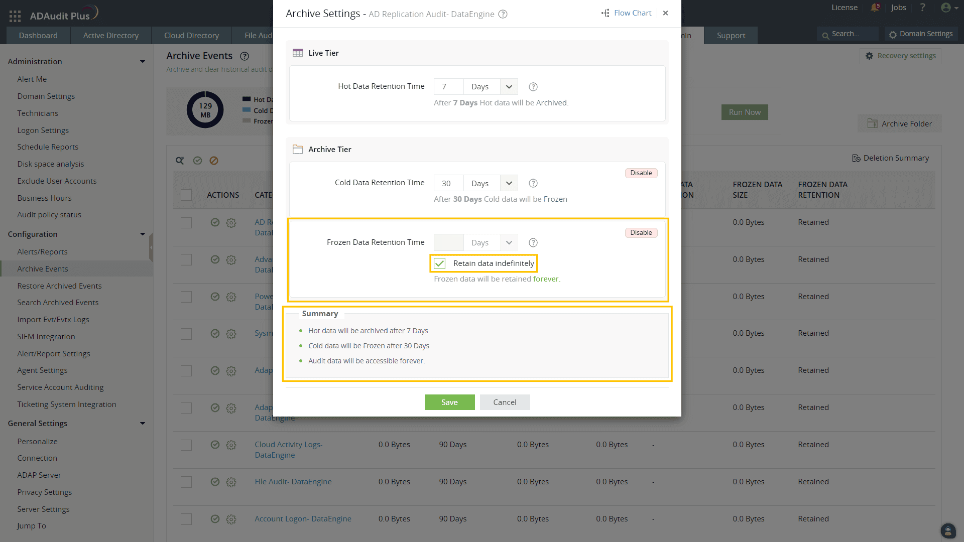 - 默认位置为<ADAudit Plus 安装文件夹>\archive