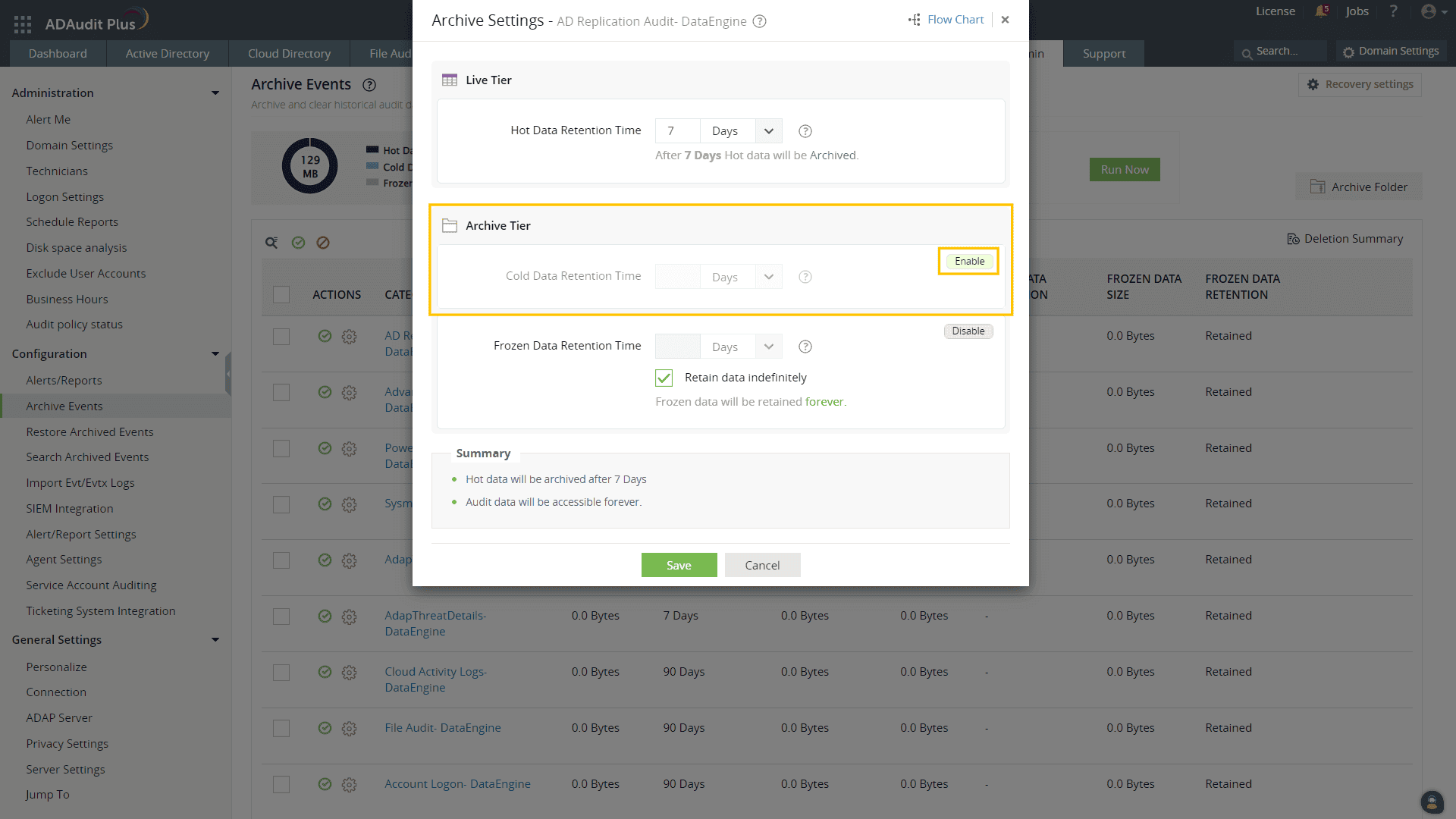 - 根据您的要求,请遵循以下步骤在归档层中配置设置: