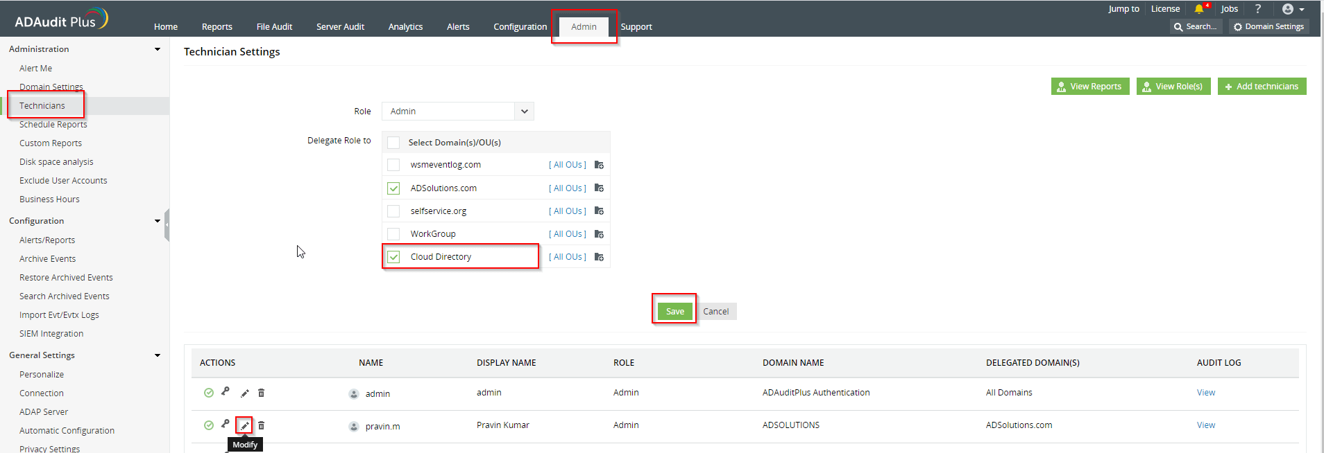 注意: 所需的证书将自动更新到 ADAudit Plus 信任存储中。