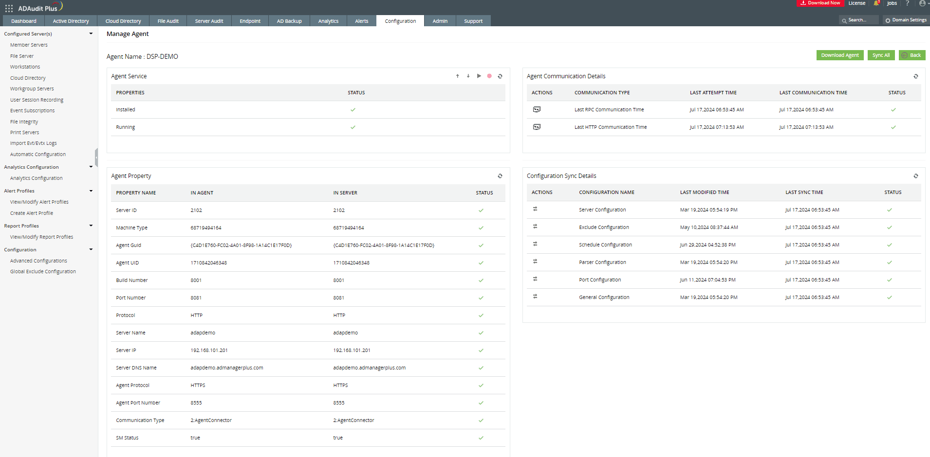 检查代理是否能够与 ADAudit Plus 服务器通信。
