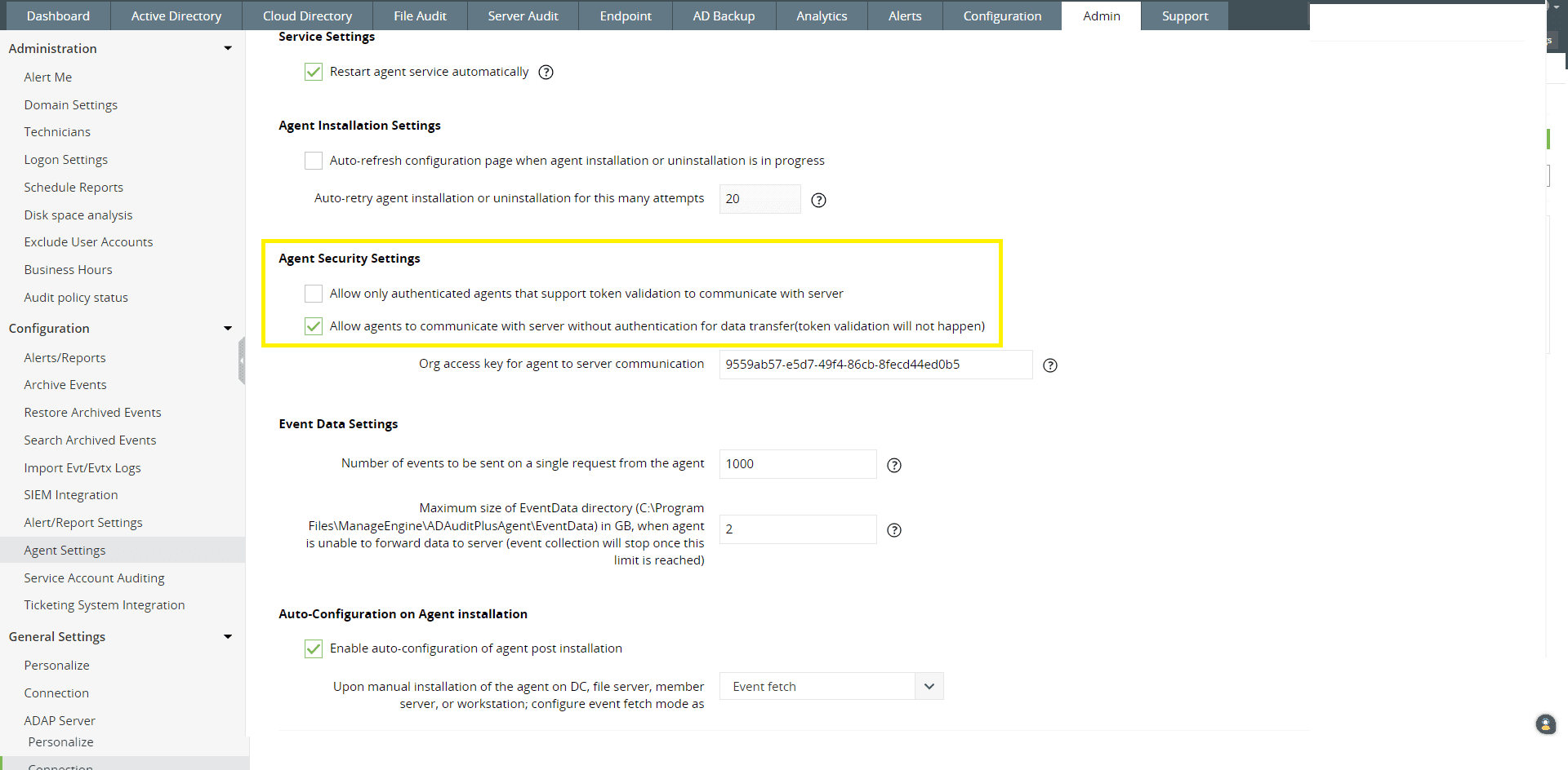 导航到管理选项卡 > 配置 > 代理设置 > 代理安全设置 > 勾选禁止未身份验证的代理与服务器的通信的复选框。