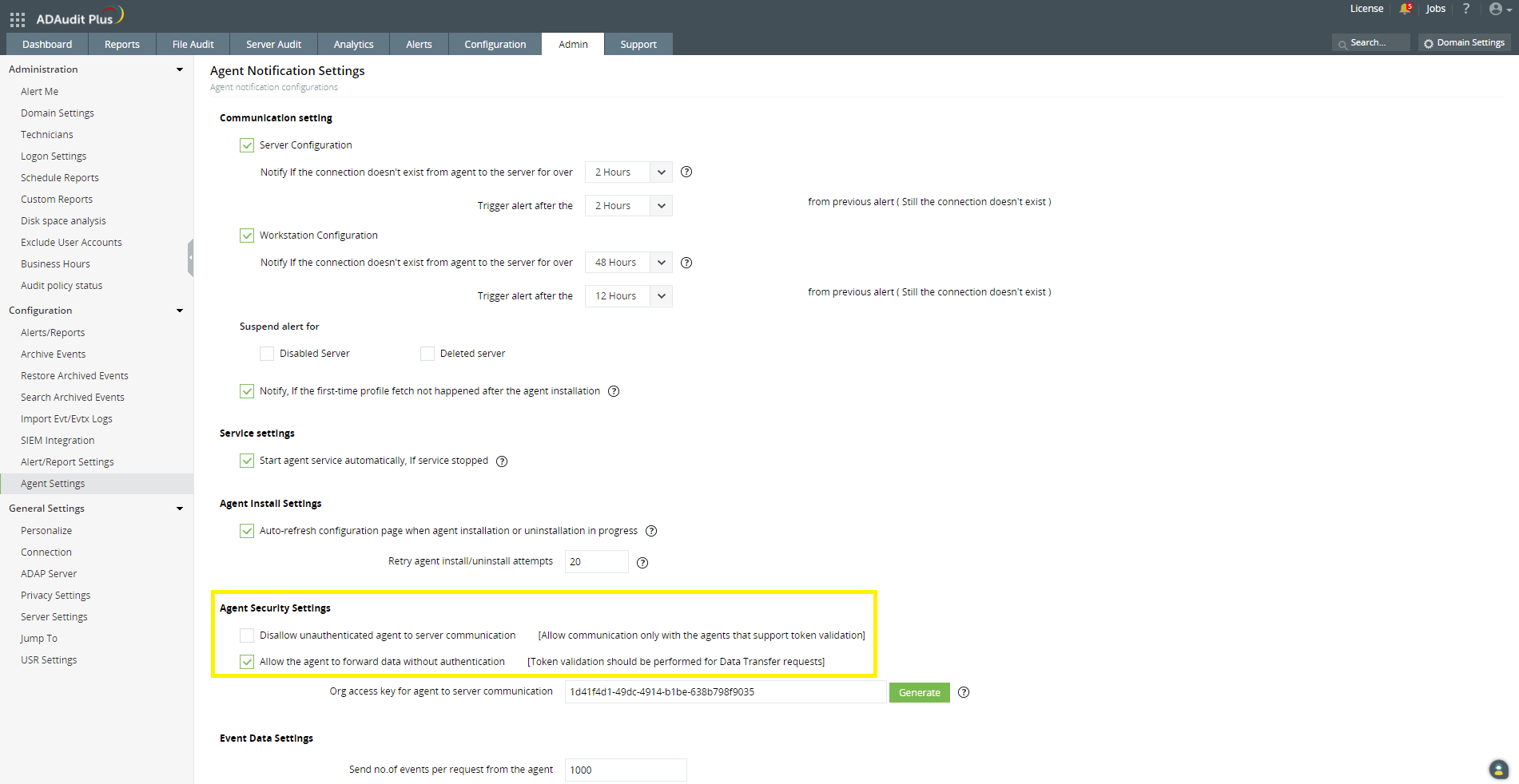 导航到管理选项卡 > 配置 > 代理设置 > 代理安全设置 > 勾选禁止未身份验证的代理与服务器的通信的复选框。