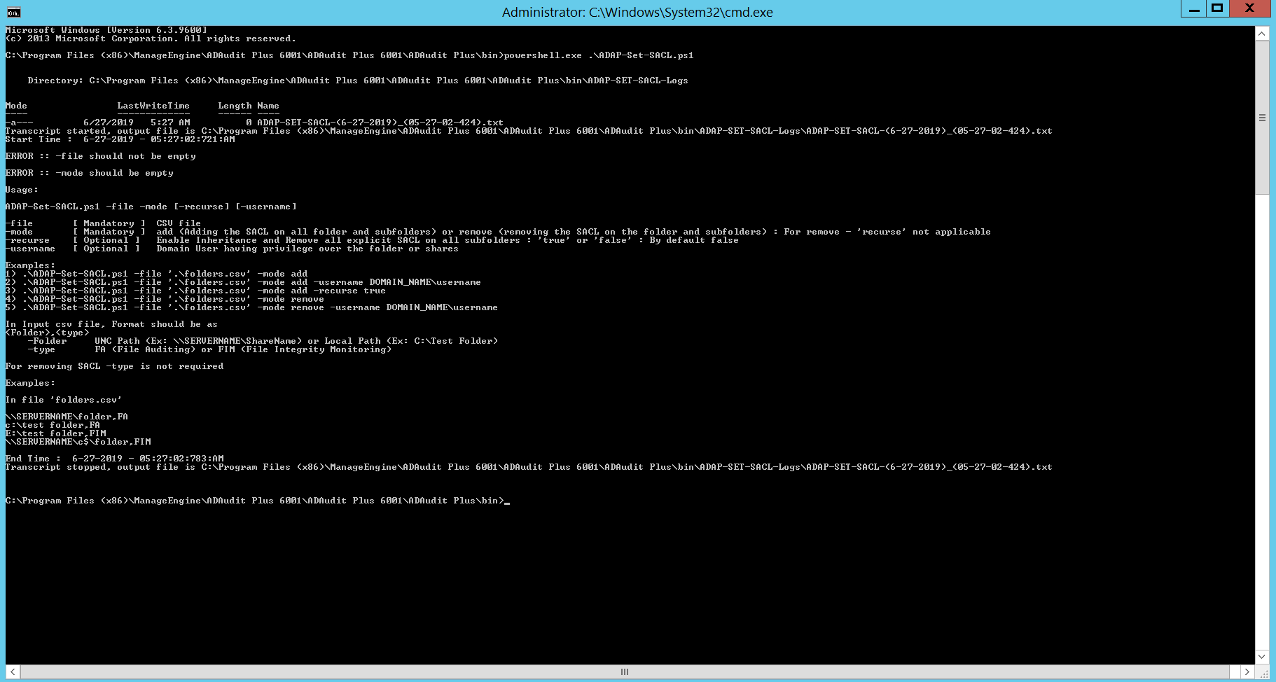 .\ADAP-Set-SACL.ps1 -file '.\file name' -mode add (or) remove -recurse true (or) false -username DOMAIN_NAME\username