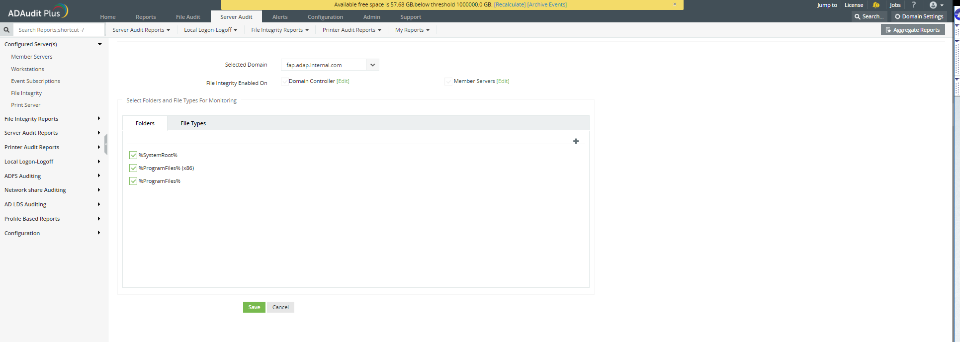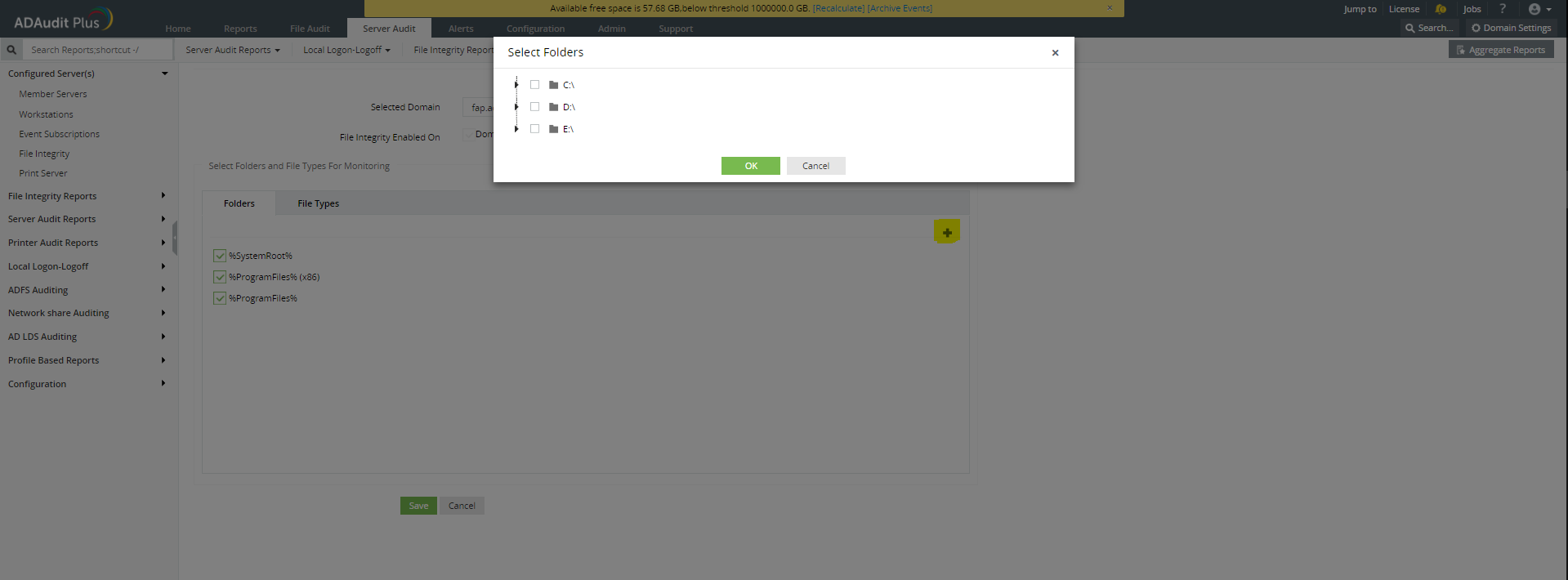 7. 注意: 为了方便选择,这里列出了本地系统文件夹,但是,选定的文件夹将适用于所有需要监视的服务器。
