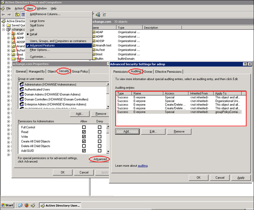 3. 对组织单位和GPO对象启用的高级安全审计项: