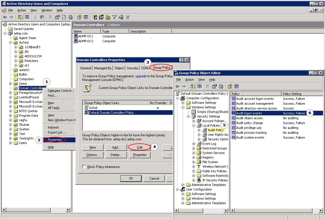 为了让ADAP报告域控制器上的本地登录与注销活动,必须更改组策略对象设置,启用“审计登录事件”的成功和失败策略设置。