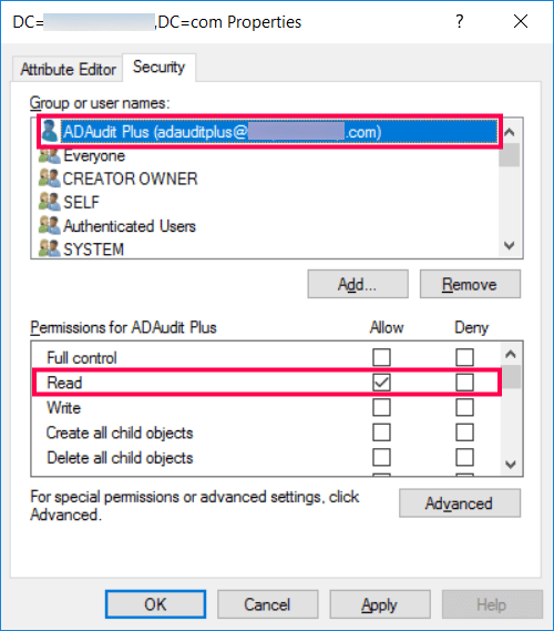 下表列出了应分配给在ADAudit Plus中配置的服务帐户的权限: