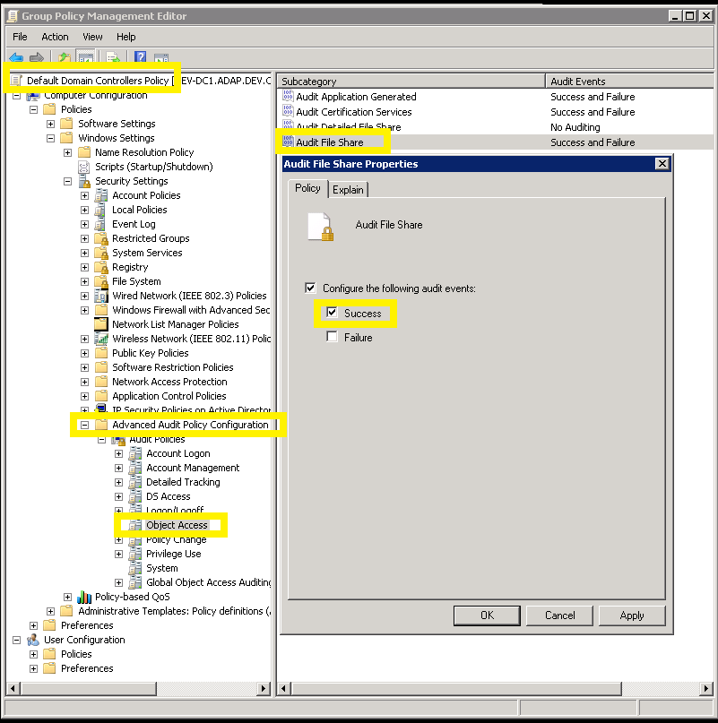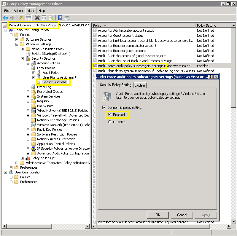 由于在 Windows Server 2003 及更早版本中不可用高级审计策略,因此需要为这些类型的服务器配置传统审计策略。