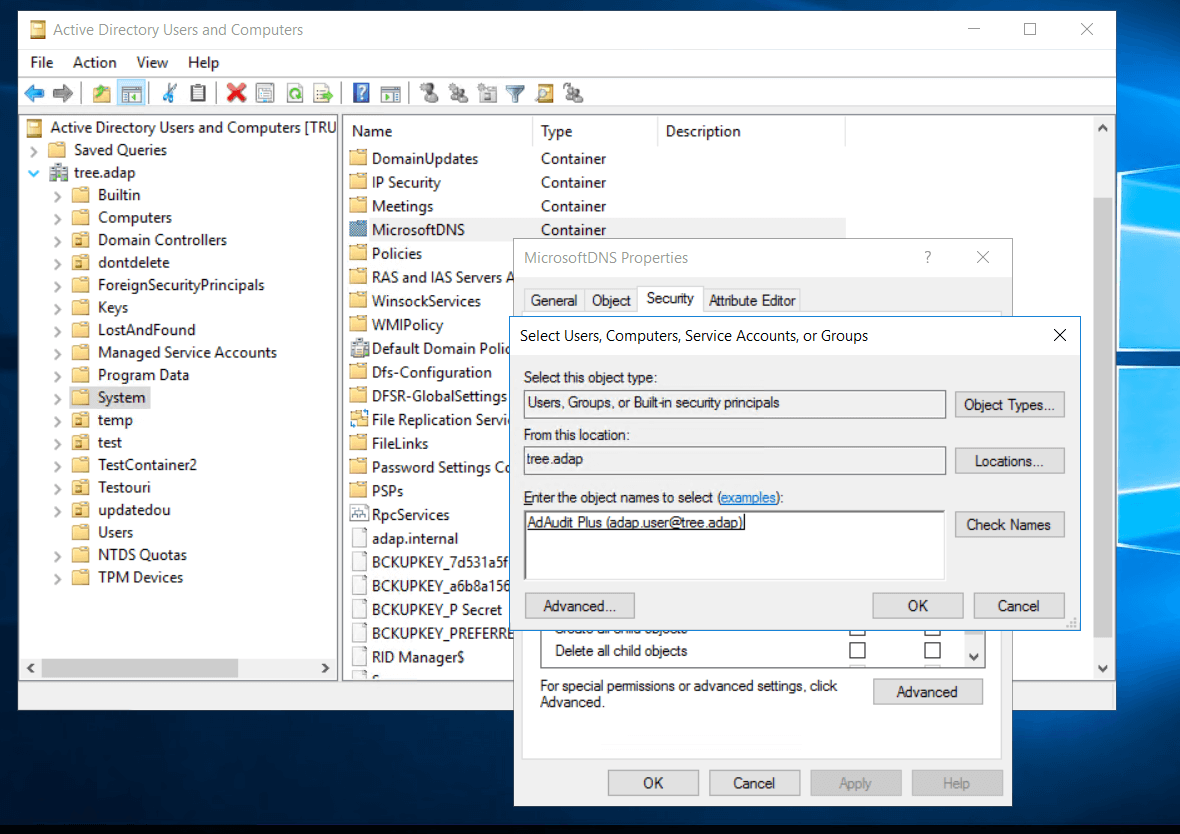 使用域管理员权限登录到目标计算机→ 找到文件夹 → 右键点击文件夹 → 属性 → 安全 → 编辑 →添加ADAudit Plus用户 → 同时提供共享和NTFS、完全控制权限。