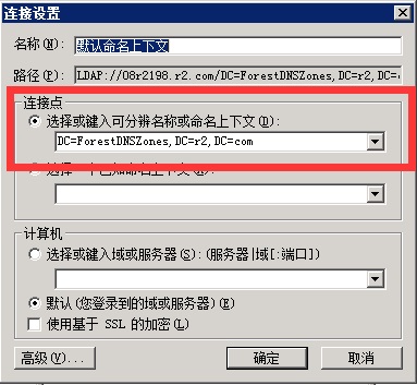 在连接点中 -> 选中 "选择或输入可分辨名称或命名上下文",输入相应的名称。这里要输入的名称依赖于您的域名,zone存储的分区。