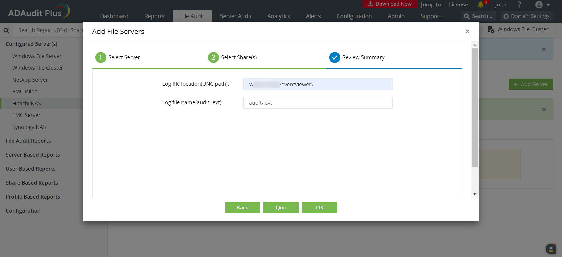 To add your target Hitachi NAS server to your ADAudit Plus console, follow these steps: