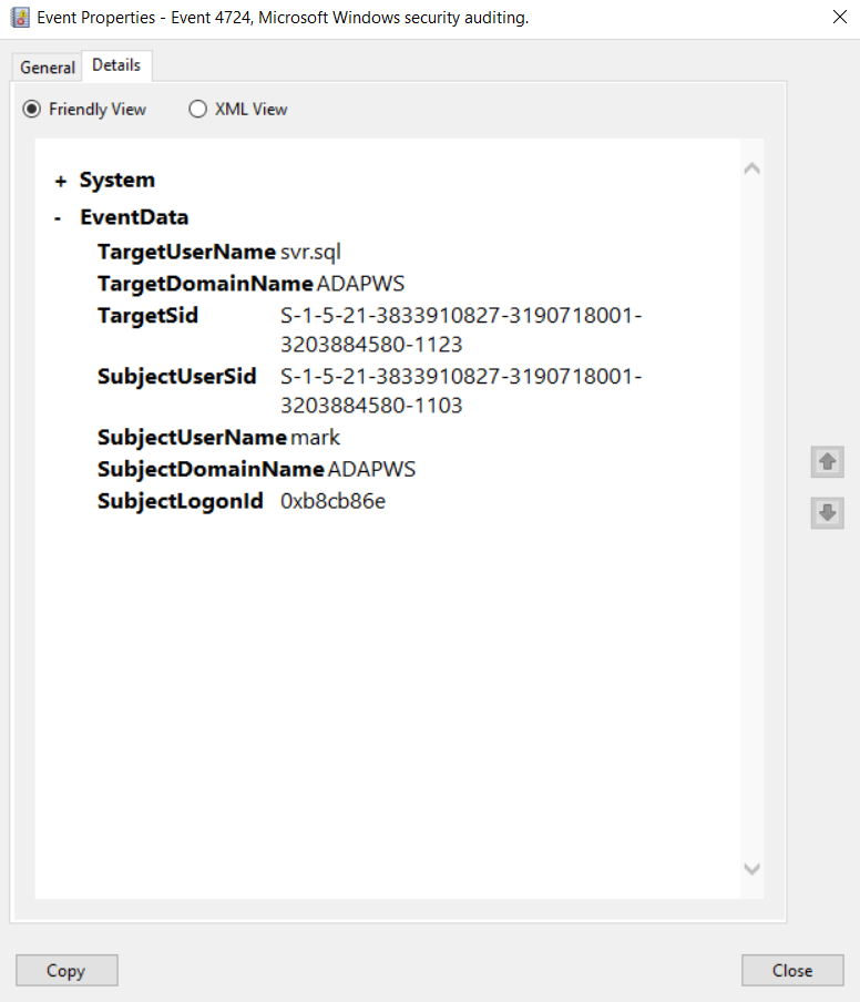 Security ID: The SID of the account that made an attempt to reset the Target Account's password.