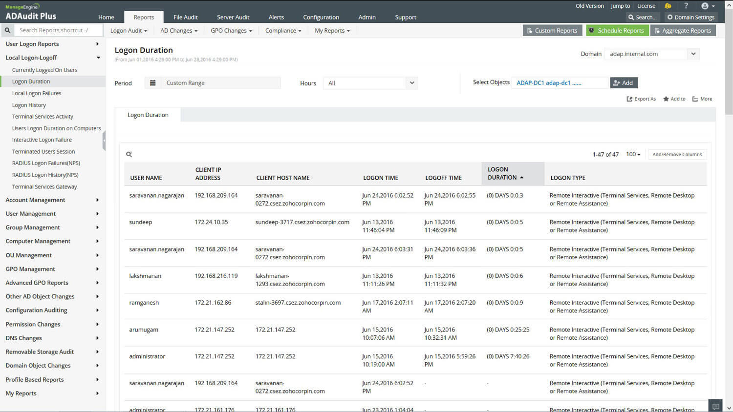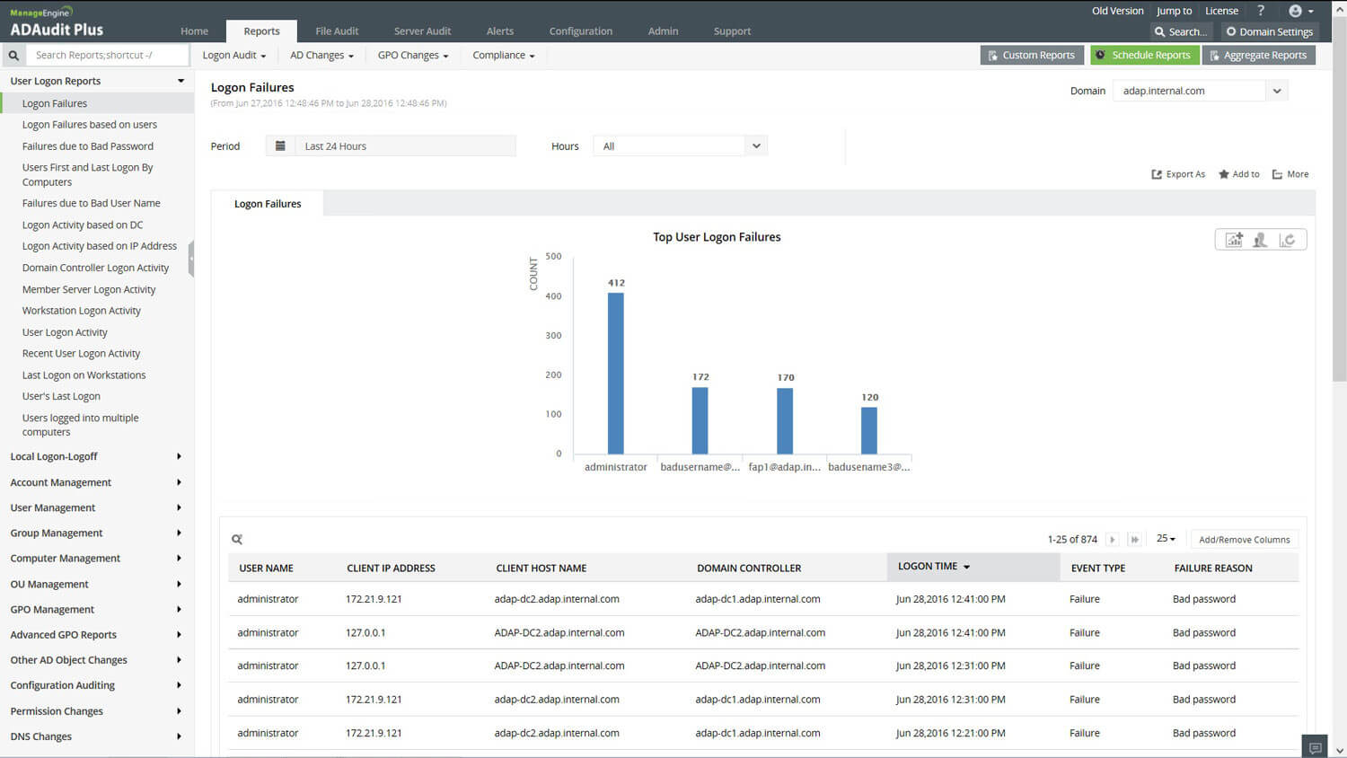 SOX — 最近用户登录活动、登录失败、管理用户操作、域策略更改、用户管理、登录历史、成员服务器上的更改
