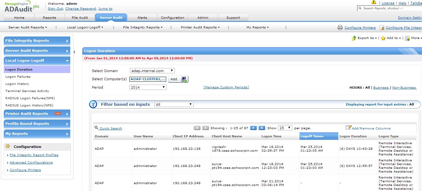 这里显示的是Windows服务器、文件完整性监视和打印机审计报表,以便让您了解所显示的详细信息和您可以应用于进一步的重点信息的各种过滤器。