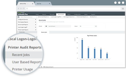 管理员可以实时审计、监视和查看打印机的使用情况、基于用户的报表、最近的作业和基于打印机的报表。快速评估打印机的使用情况,包括时间和日期、打印的用户名、文件名称、页数、副本、文件大小、打印机名称和服务器信息以及即时邮件告警。满足安全性和SOX, HIPAA合规要求,导出为XLS、HTML、PDF和CSV格式。