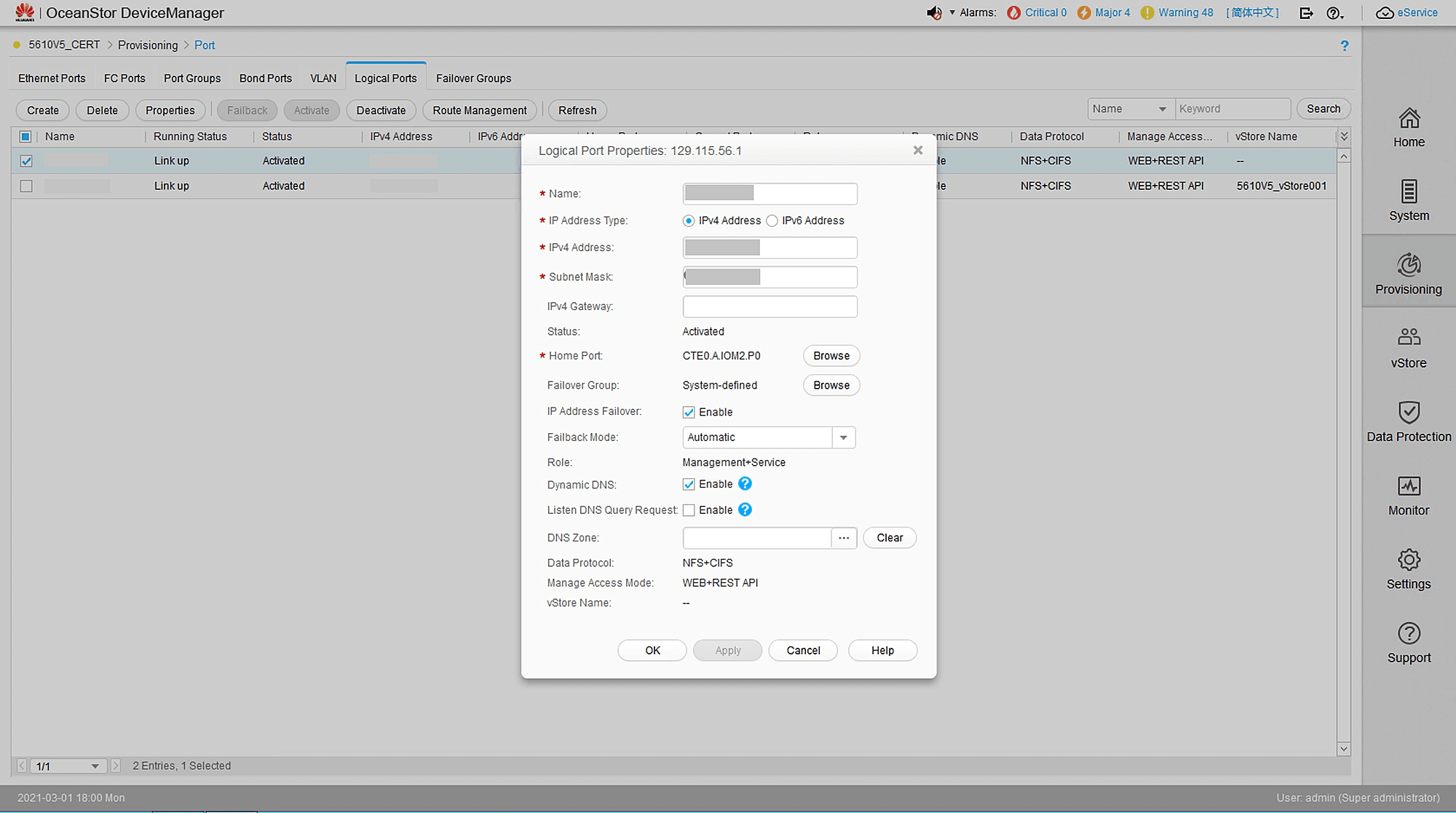 - Ensure that the Huawei OceanStor storage device's name resolves to an IP that serves as: