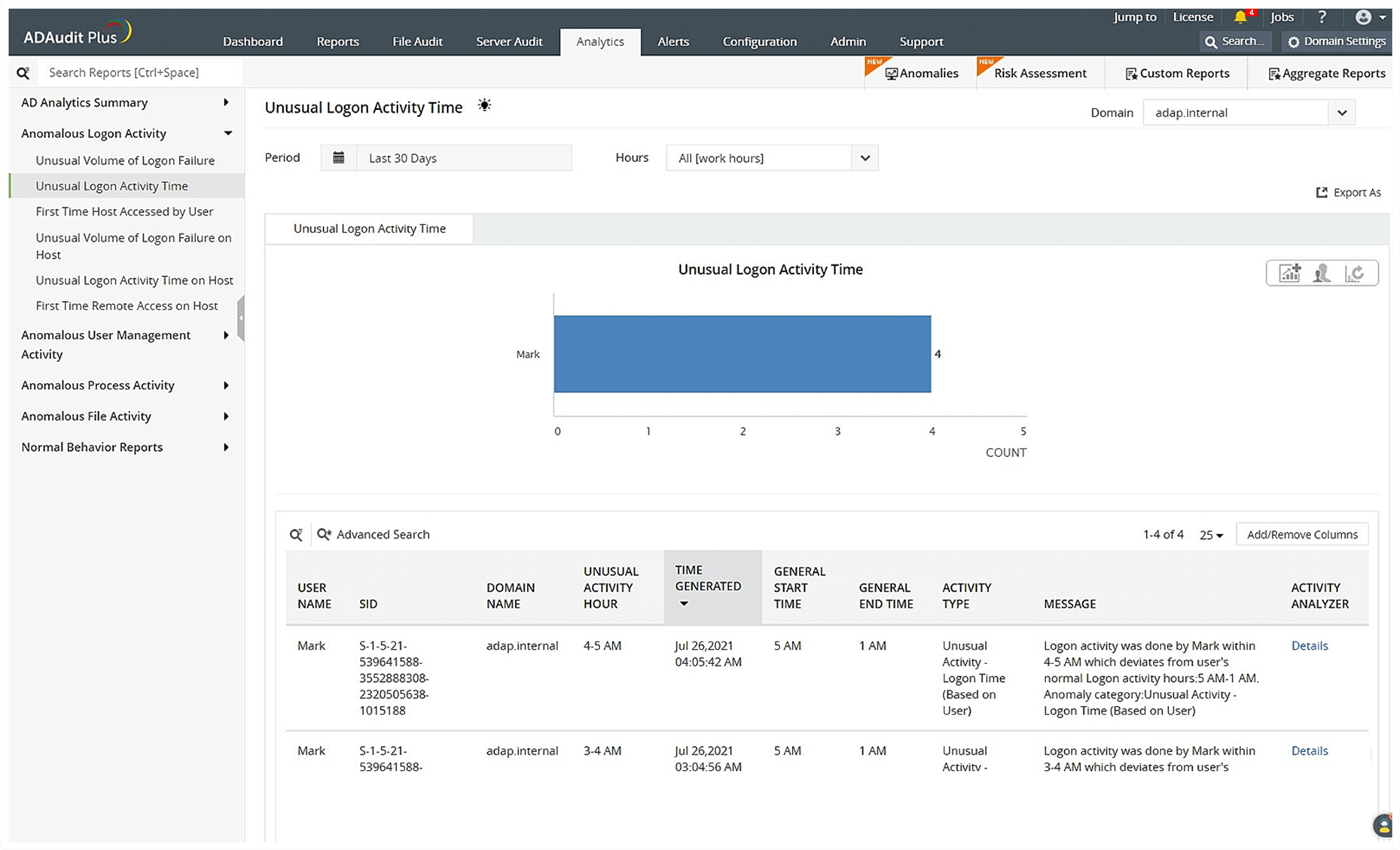 Activity analyzer: Receive details on the source and time of origin of the unusual logon event.