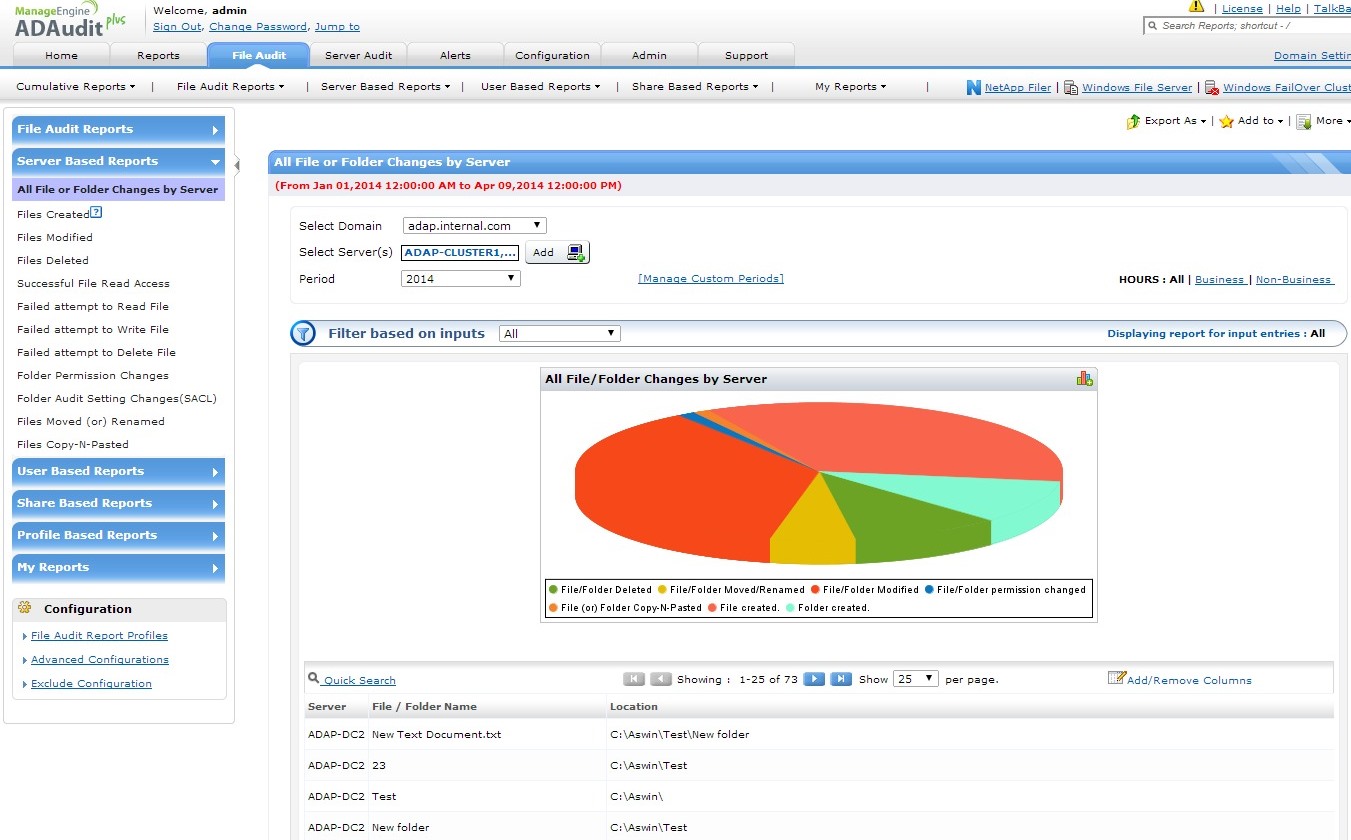 基于您选择的域审计文件服务器,并从数个审计报表中进行选择。