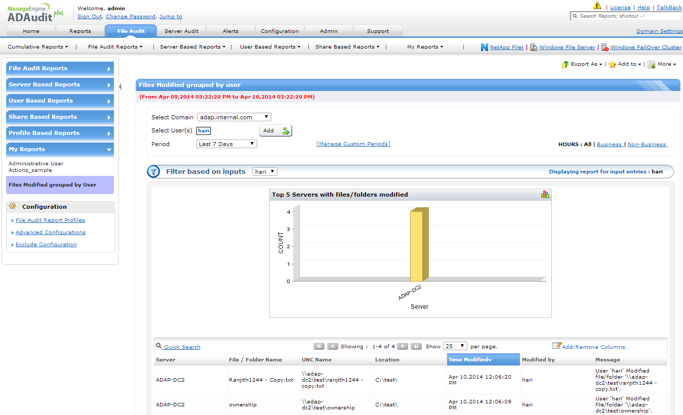 持续监控所需的任何Active Directory报表可添加到“我的报表”,就像将报表加入书签一样以便快速查找。