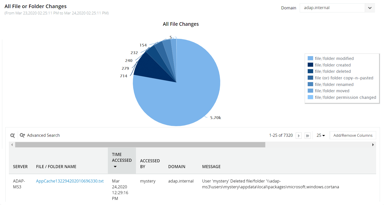 ADAuditPlus将混乱的事件日志数据转换为可操作的信息,使您能够知道谁访问了Windows、NetApp、EMC和Synology文件系统中的哪个文件。