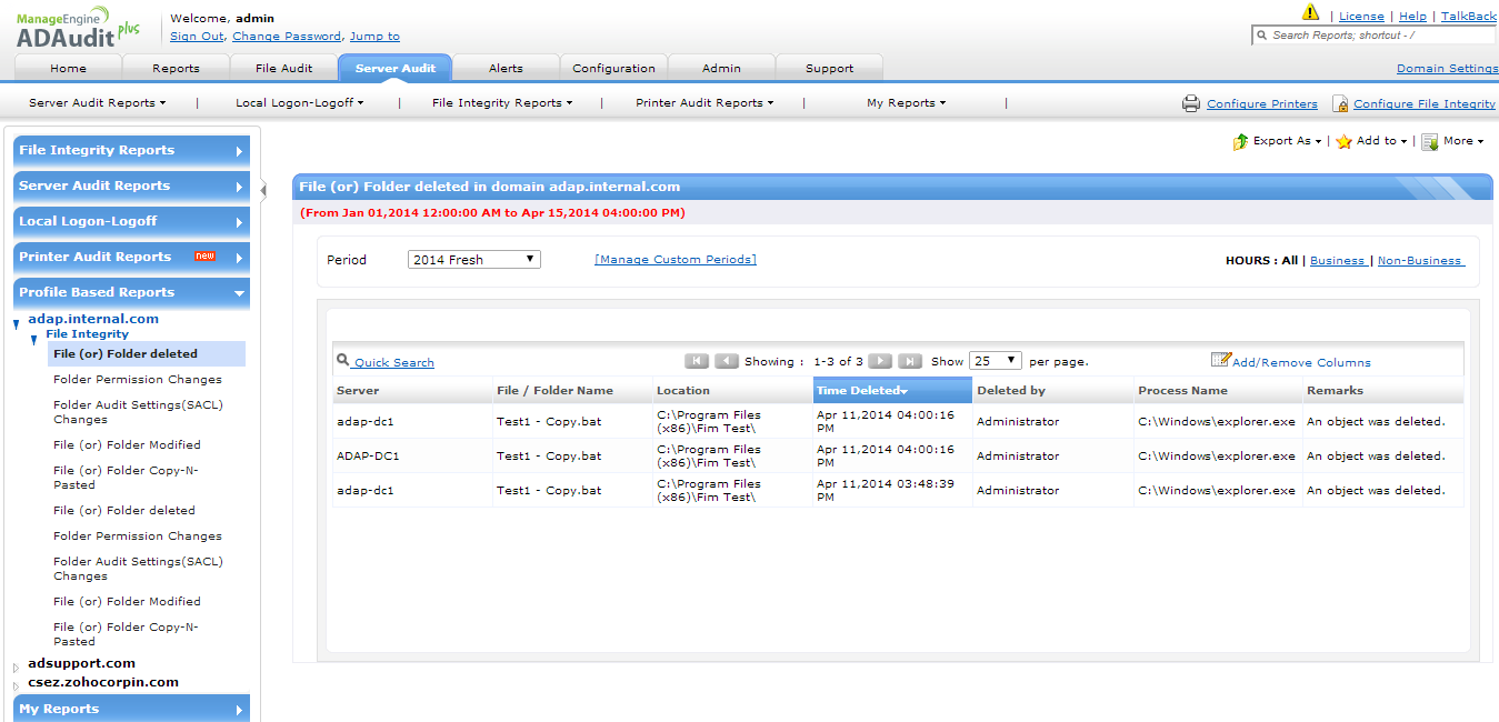使用来自以上任一Active Directory审计报表的报表创建新报表配置文件。选择要审计的对象操作。而且,选择域和其中要与报表配置文件关联的对象。 | |
