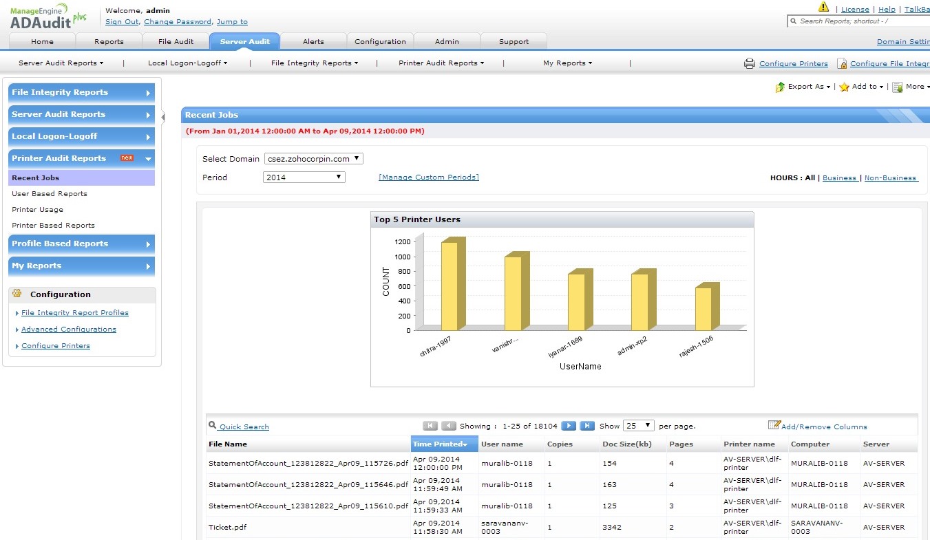 打印机审核报表 | |