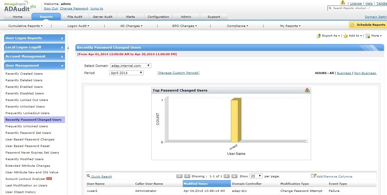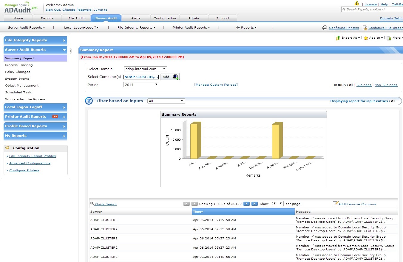 导出报表和满足合规要求— 使用XLS、CSV、PDF和HTML格式的审核报表满足PCI、SOX、GLBA、FISMA、HIPAA合规要求。