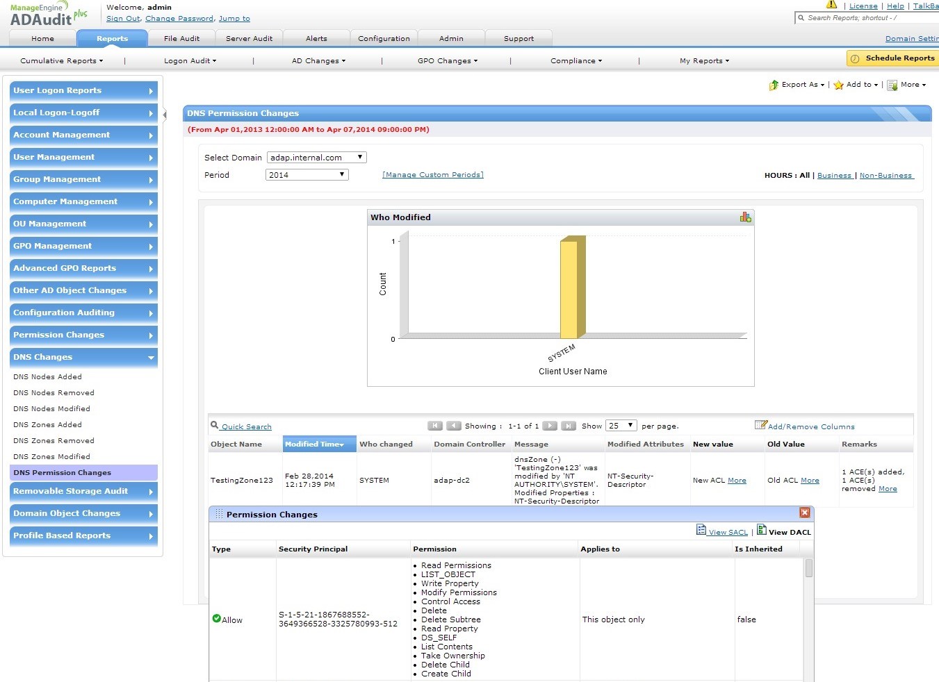 实时AD权限更改报表和服务器 | |