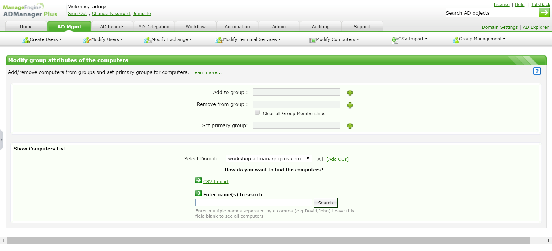 使用ADManager Plus轻松修改多个计算机对象。批量修改计算机有两种方法: