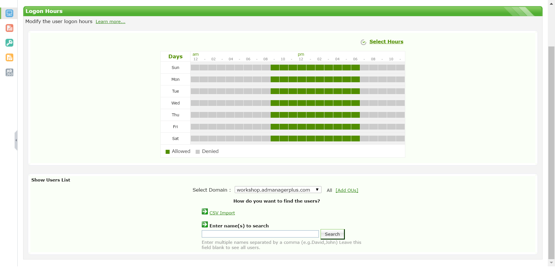 ADManager Plus的登录时间管理功能使您可以轻松地为所有Active Directory用户设置登录时间,包括根据需要进行的轻松限制。您还可以生成有关登录时间的完整报表,包括有关帐户状态和名称的详细信息。