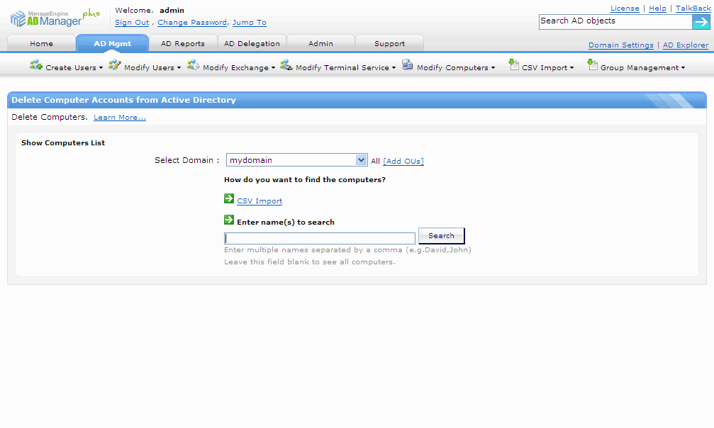 Active Directory管理 涉及 用户管理, 计算机管理, 密码管理 , 联系人管理, 组管理 组管理等多项艰巨而耗时的任务,因而对大多数管理员而言都是一场噩梦。此外,当仅使用ADUC或PowerShell等本机Active Directory工具执行这些管理任务时,会感觉这些任务永远没有穷尽。因此,一款可简化所有这些任务的软件成为了迫切需求。ADManager Plus,这款基于Web的Active Directory 管理, 报告 和 指派 软件,通过自动化所有这些任务,解救管理员于困境之中。
