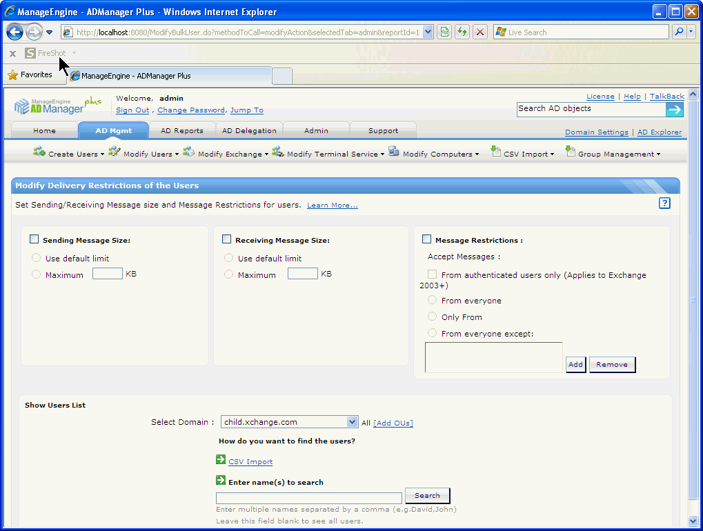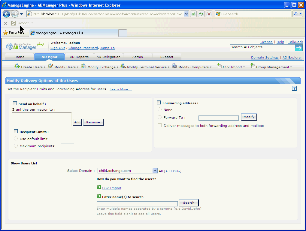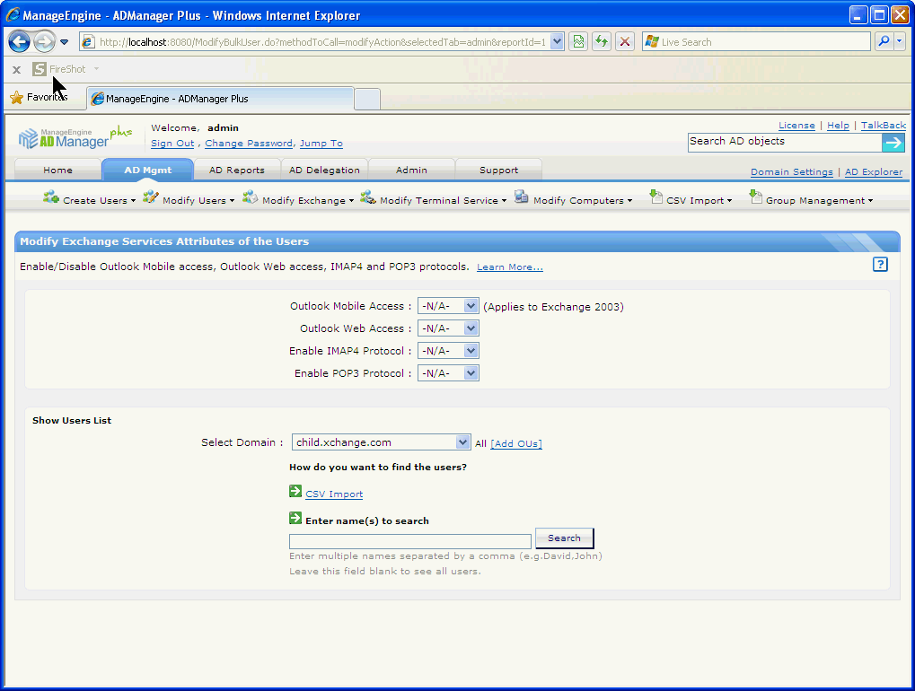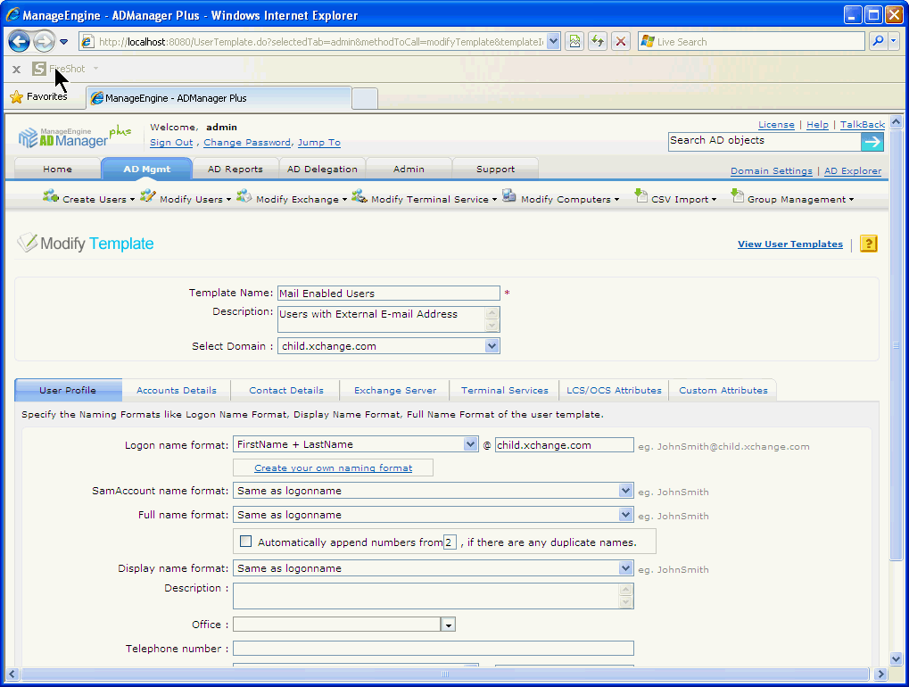 使用ADManager Plus的Exchange管理系统创建和管理Exchange邮箱以及配置邮箱权限。现在可支持Microsoft Exchange 2010!