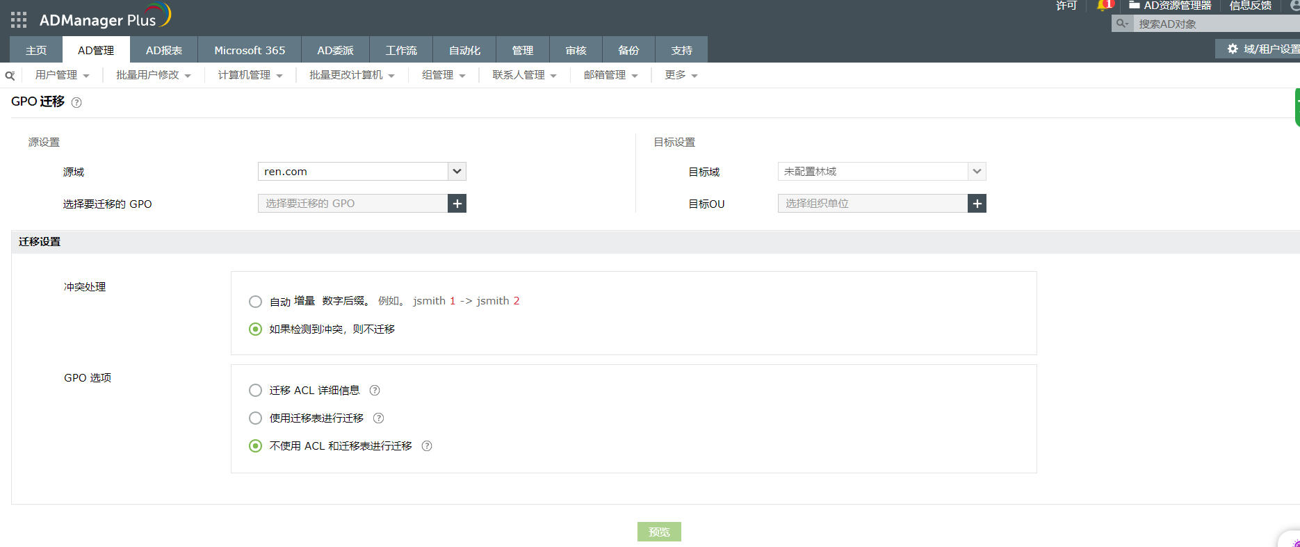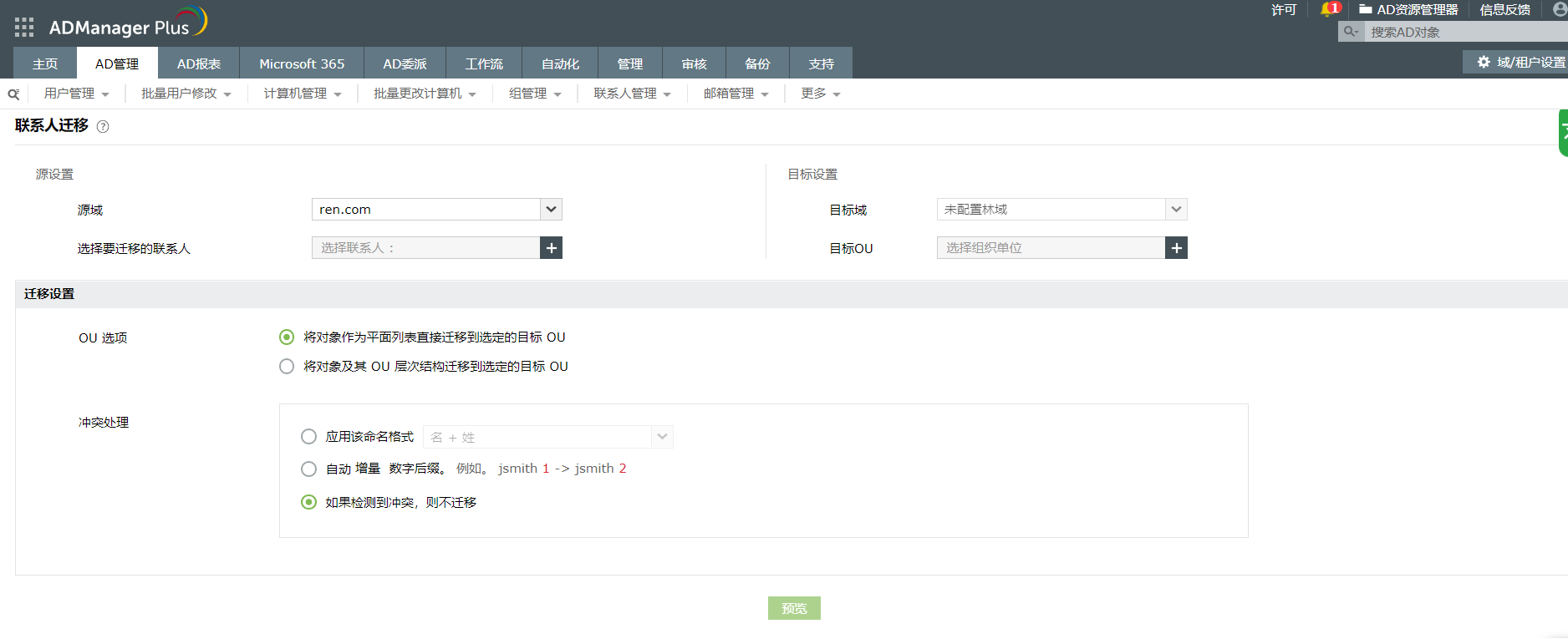 部署测试环境,并使用ADManager Plus将对象从源环境迁移到目标环境,以了解迁移过程可能对AD产生的影响。