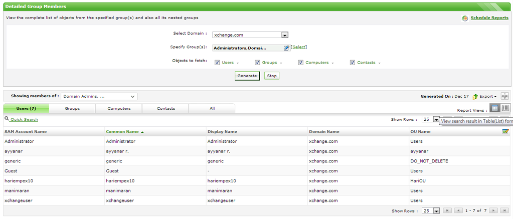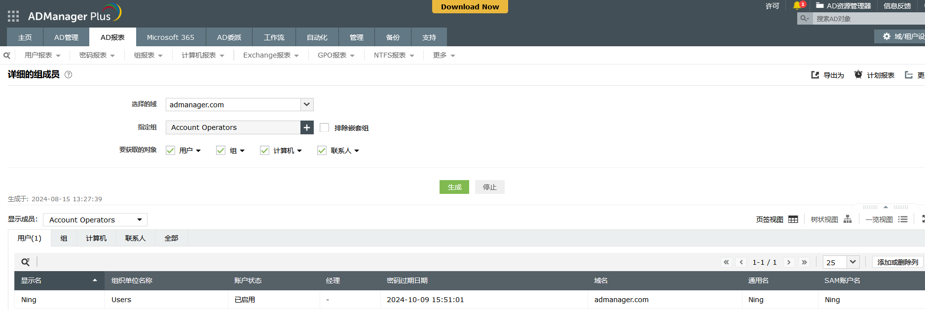 该报表用于提取指定Active Directory组及其嵌套组成员的所有对象的完整列表。此报表的亮点包括: