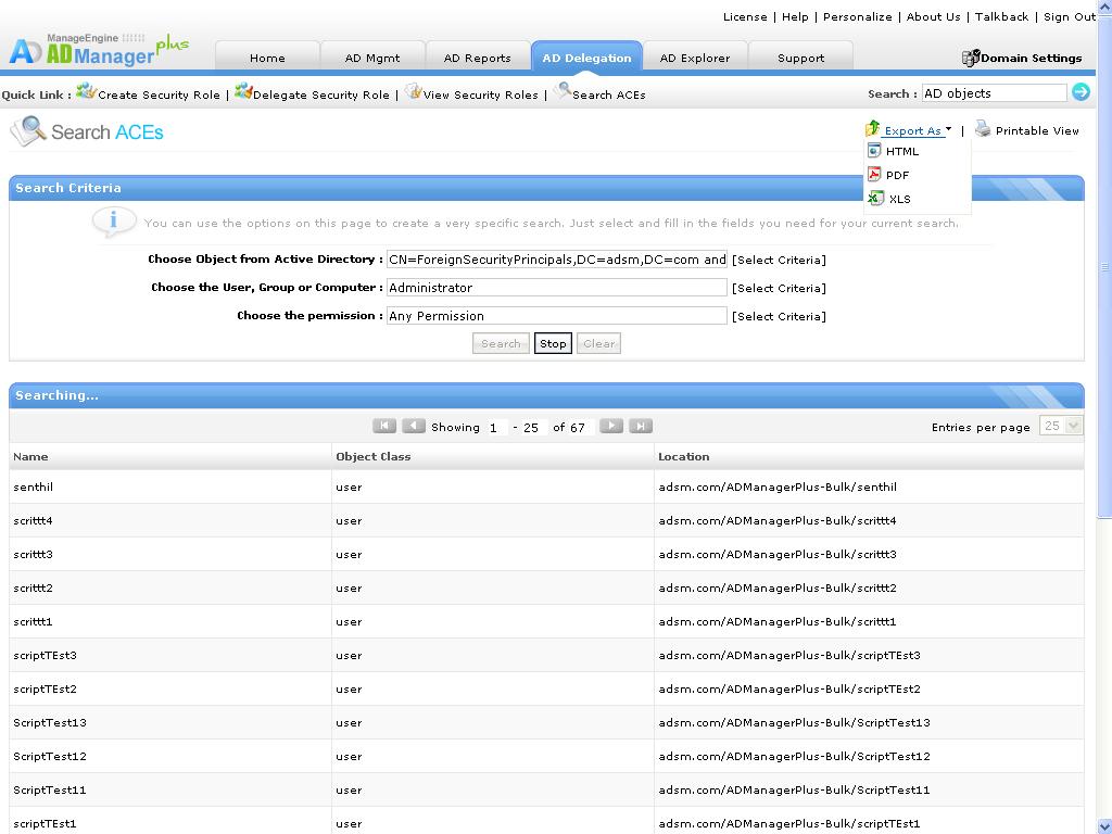 ADManager Plus让您能够搜索授予安全主体(例如,用户、组和计算机)的权限。它为您提供了灵活性,可以在搜索条件中包括active directory对象、安全主体和权限。