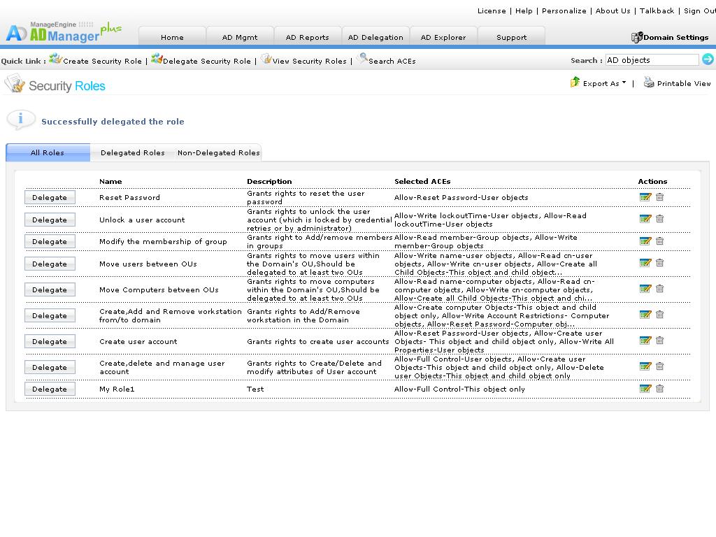 ADManager Plus附带内置的安全角色,可直接指派到安全主体以授予执行重要管理任务的权限,这些任务包括: