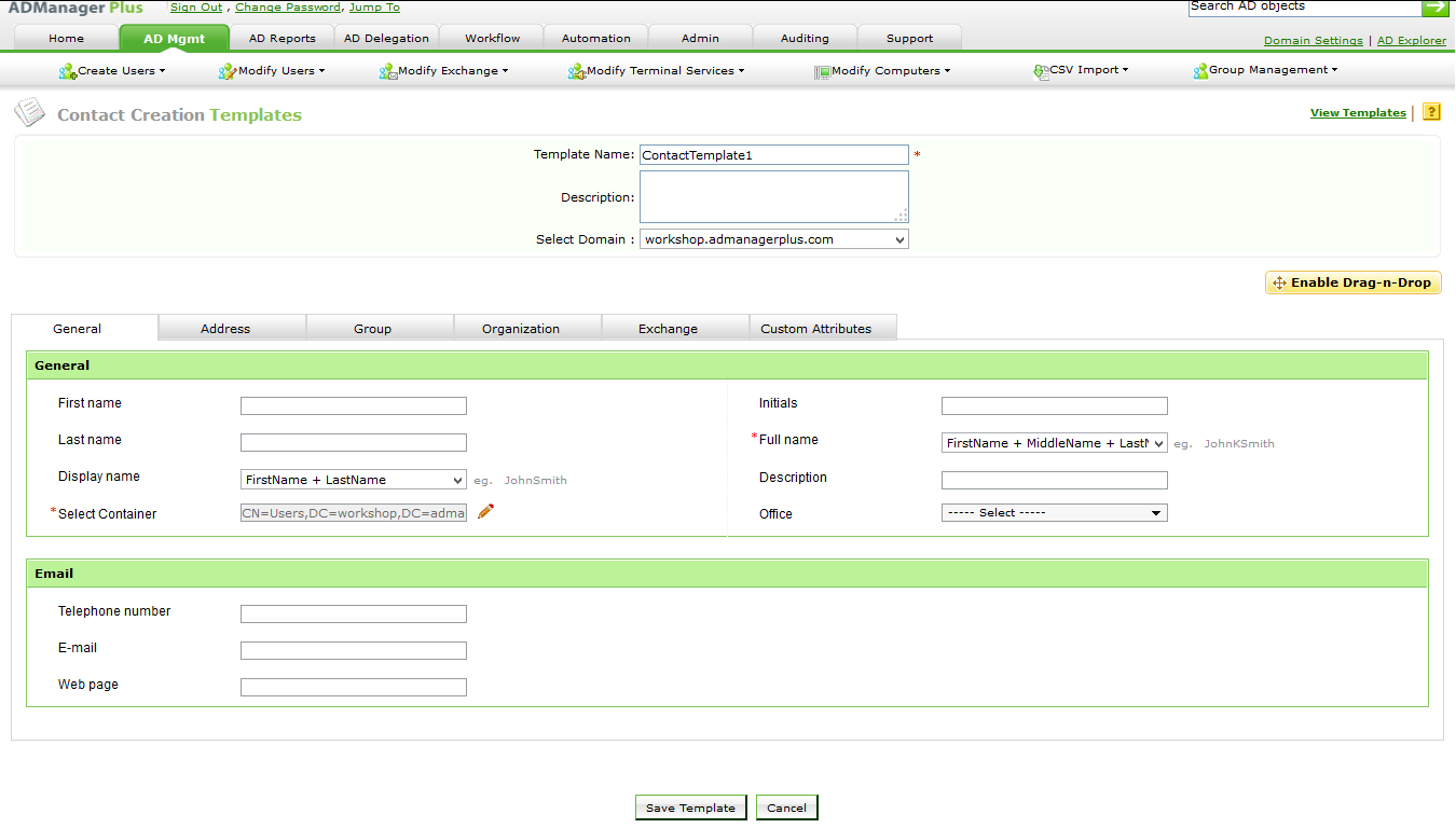 ADManager Plus是易于使用的解决方案,可一次管理多个Active Directory(AD)联系人。编写冗长而复杂的PowerShell脚本的日子已经一去不复返了。使用ADManager Plus的CSV导入选项,只需单击几下即可批量创建,修改,移动或删除AD联系人。