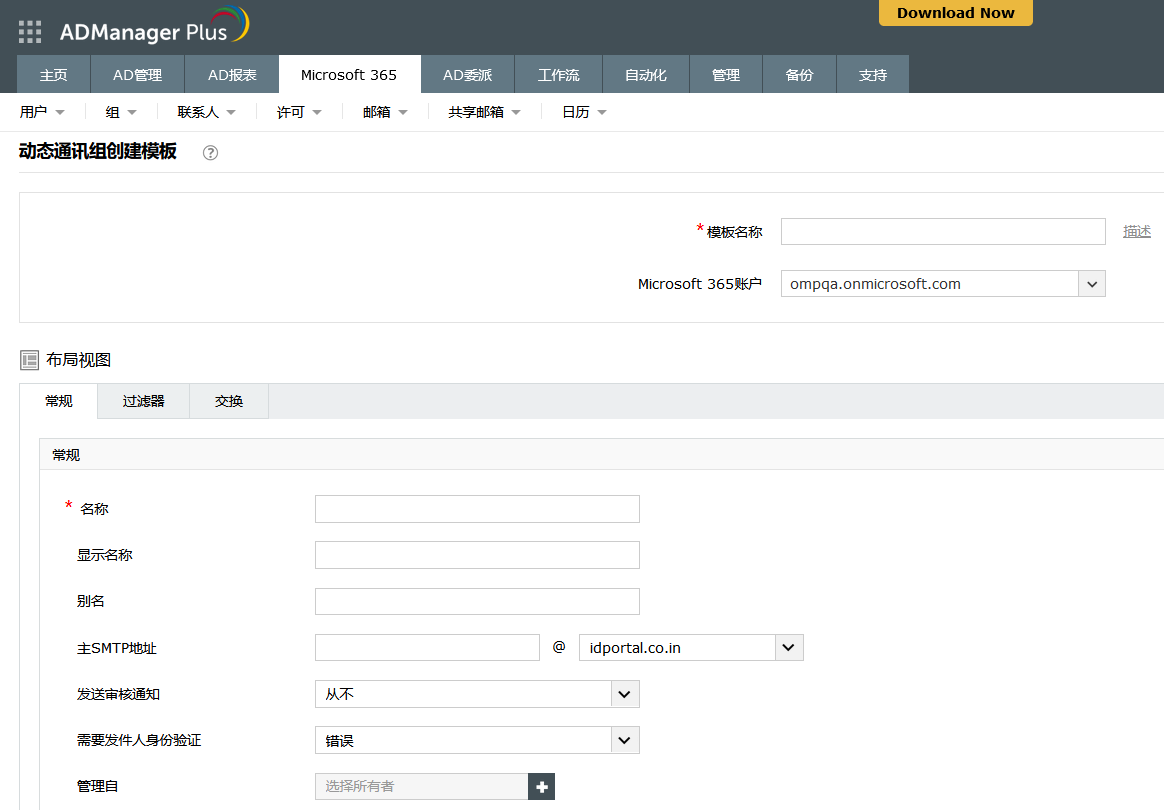 ADManager Plus是一个控制中心,您可在其中管理多个平台,无论是Active Directory、Exchange、Office 365还是Skype for Business (Lync 2015)。ADManager Plus的另一个亮点在于,它允许您在Exchange Server 2007、2010、2013和2016中创建动态通讯组,并允许您在Exchange Server 2003中创建基于查询的通讯组。