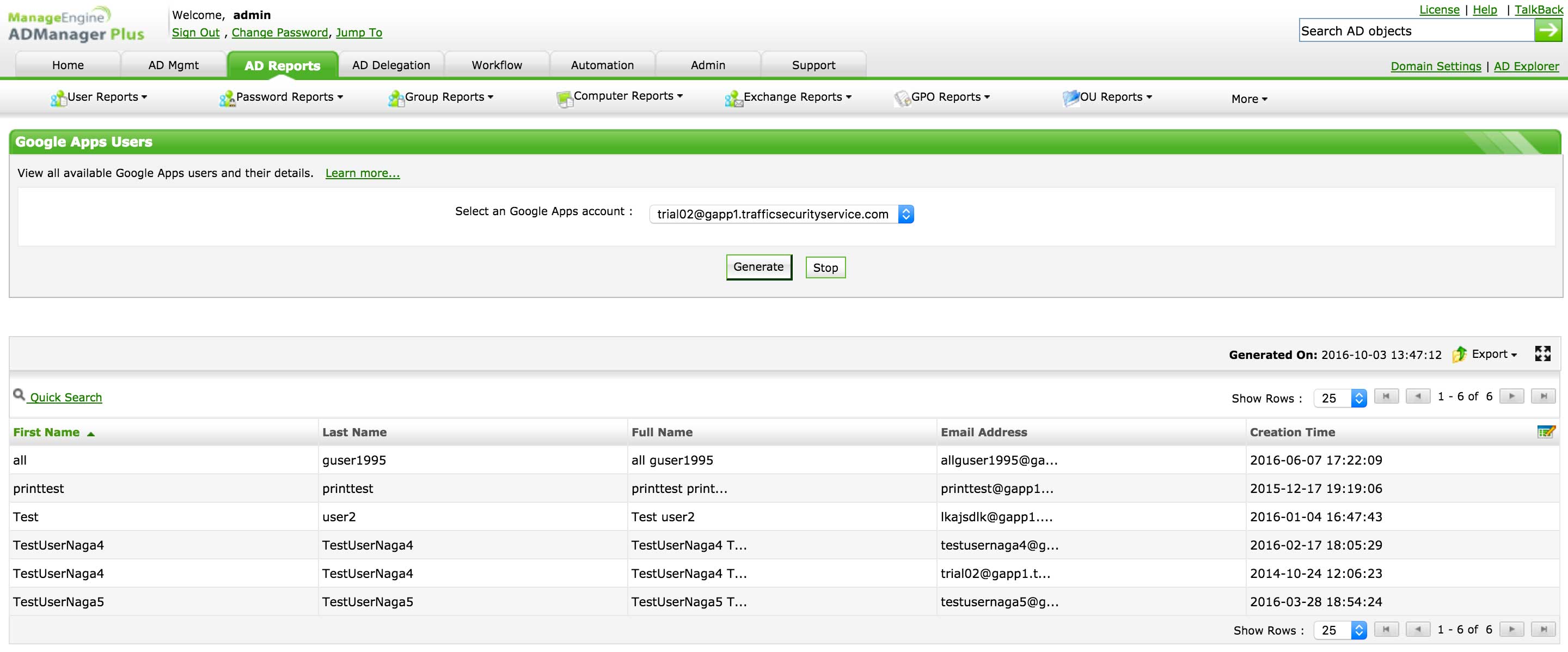 使用此工具中提供的预定义报表,轻松提取G Suite用户数据。使用搜索选项轻松找到特定用户并查看其帐户详细信息。另外,还可以将这些报表导出为HTML、CSV、PDF和XLSX文件格式。您只需进行几次鼠标单击,即可生成G Suite环境中关键信息的下列报表。