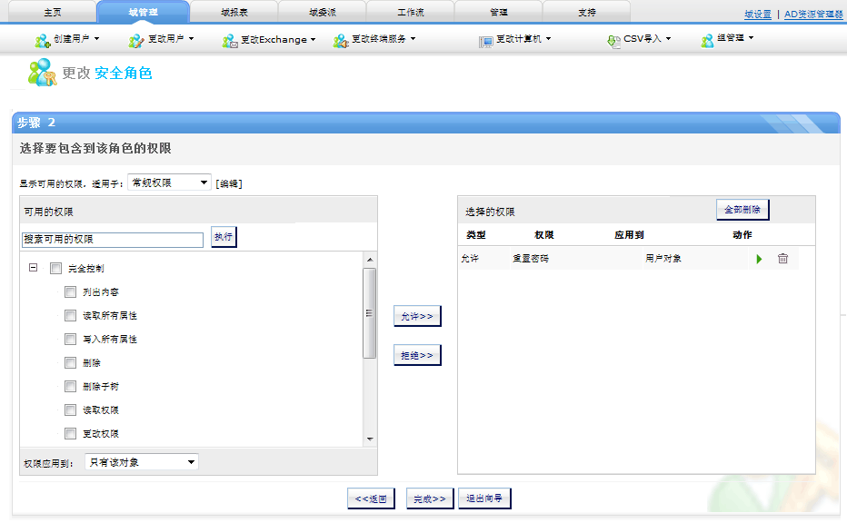 选择AD管理页签,选择安全管理,点击查看安全角色。