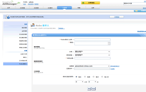 b) 如何创建 Robo请求人,例如,计划“创建请求”,以便所需的请求能够在所配置的时间自动被执行。