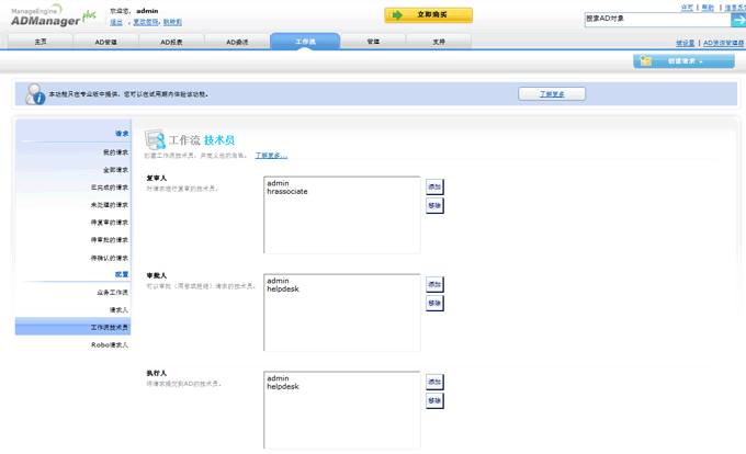 由于管理员总是身负重任,他们会委派一些任务给帮助台技术员。但同样,一个管理员不可能手动检查帮助台执行的每个任务。为了确保管理员能够控制每一个帮助台执行的任务,管理员保留对每个由帮助台创建的请求进行“批准”的权限。为了便于进一步减轻负担,管理员使用一个审核人,审核帮助台发来的请求。这会进一步提高安全性,减轻管理员的负担。管理员对请求进行批准后,帮助台技术员就可以处理任务了。