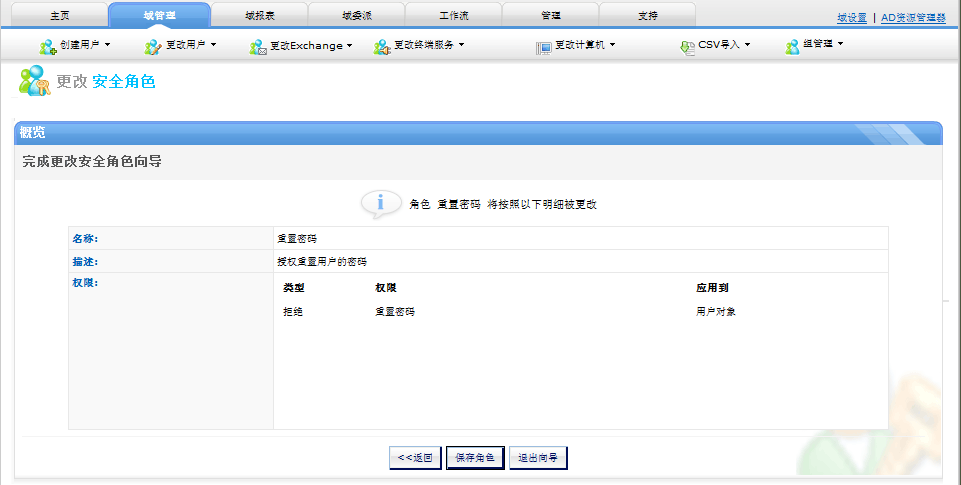 选择AD管理页签,选择安全管理,点击查看安全角色。
