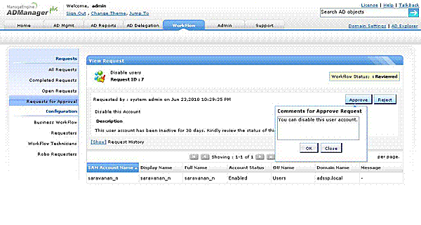 审核人登录到ADManager Plus - -> 点击工作流标签