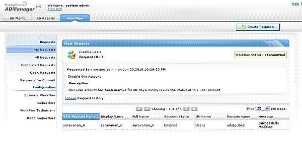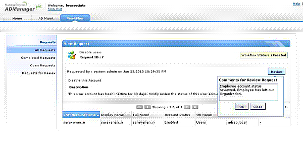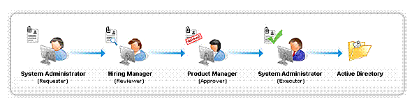 1) 系统管理员(请求人)生成非活动状态的用户报表并创建请求来禁用他们。
