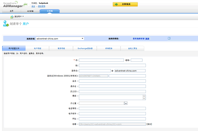 使用管理员登录到ADManager Plus - -> 点击工作流标签
