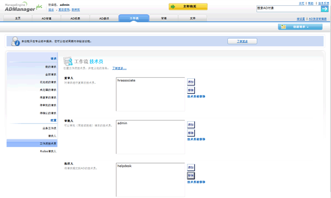 使用帮助台用户登录到ADManager Plus - -> 点击工作流标签