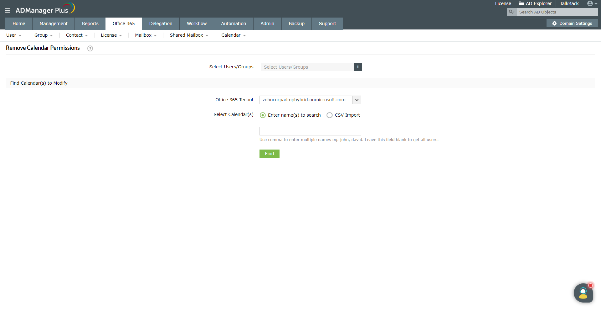如何使用ADManager Plus撤销Office 365日历权限: