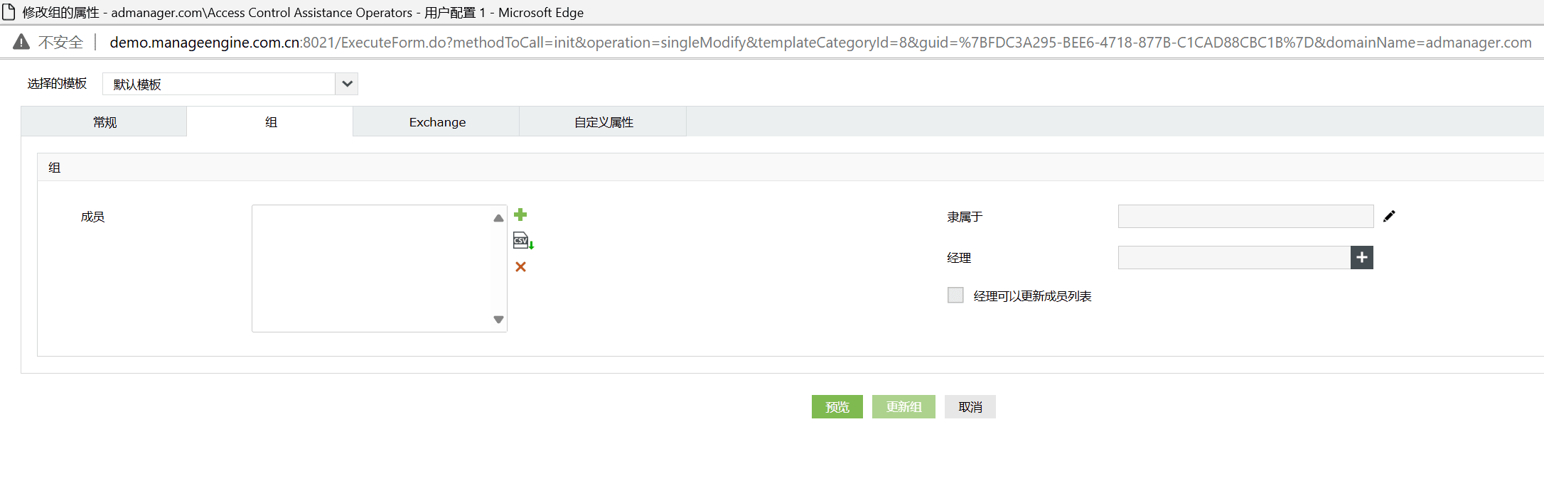 利用ADManager Plus,您可执行简单的GUI操作以修改Microsoft 365安全组,例如通讯组以及启用了邮件的安全组。利用提供的选项,通过输入组名直接进行搜索,或者按字母筛选组结果,您可轻松找到所需的组。只需进行几次单击,即可进行所有权、成员资格、电子邮件选项等方面所有的所需组更改。您可预览组更改,确保所有的所需更新均已完成。