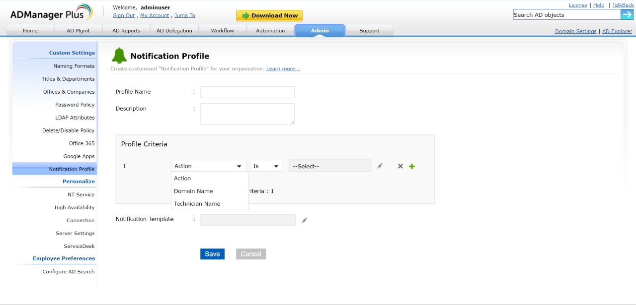 下次使用ADManager Plus在组织中执行任何AD,Exchange或Office 365管理任务时,都会立即收到通知。